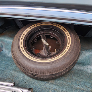 He showed me the carpeting of the “hump” in the rear seat area, well worn from kids’ shoes rubbing on it through the 60s and 70s. The original spare tire still rides in the trunk, while up front there’s a foot operated electric windshield washer motor. And speaking of electric, it has a generator instead of the later equipped alternator.