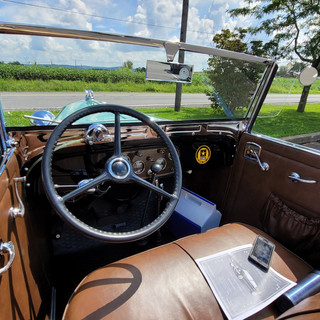 The cabriolet is powered by a 194 cu in, 60 hp OHV 6 cylinder. Andy replaced some of the mechanicals on it like the fuel pump, water pump, generator and starter along with the tires.
